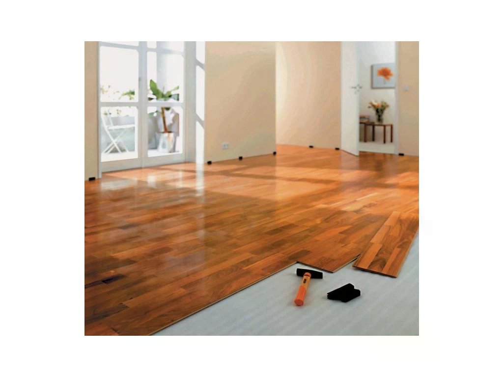 Mezi parketami a stěnou musí zůstat dilatační mezera, kterou docílíme vložením dilatačních pásů nebo povytažením celého pásu cca o 5 cm nad úroveň. Izolační pásy je nutné klást těsně vedle sebe a zabránit jejich pohybu přelepením lepící páskou v místě vzájemného přesahu. Podél stěn přesahující pás seřízneme ostrým nožem až po položení parket (podlahy) na celou plochu místnosti.